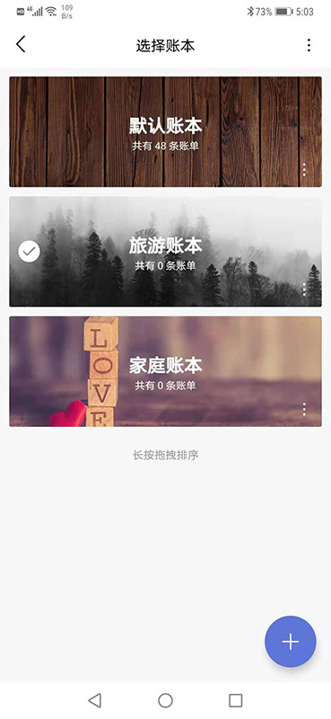 多账本管理不同账本的账户,账单,分类,预算,周期账单等各自独立,并且数据不互通,相当于子账号的概念。 如何使用多账本 点击右下角“+”号可以添加一个新账本。 长按并拖拽账本可以排序. 点击页面右上角更多可以加入多人记账。 点击账本右下角更多按钮可以删除,更新账本。