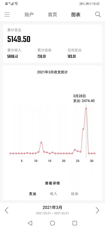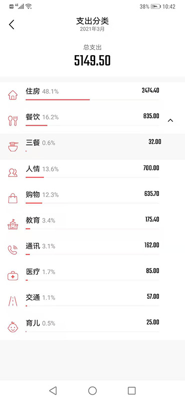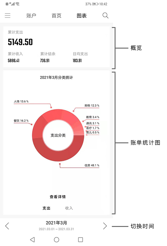 汤圆记账为您提供了直观的统计方式,您可以从分类和时间两个维度了解自己的收支情况。