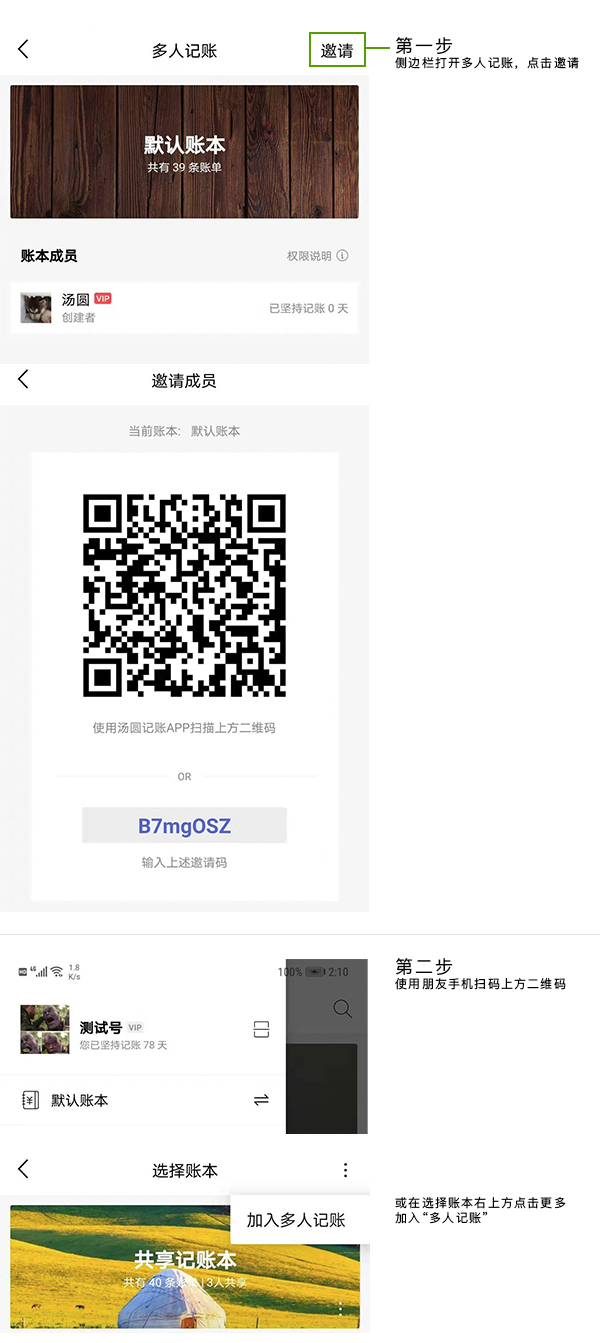 多人记账的邀请人需要开通VIP功能,被邀请人不用开通。